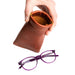 • Sleek design saves room in your bag. while durable full-grain leather keeps glasses protected